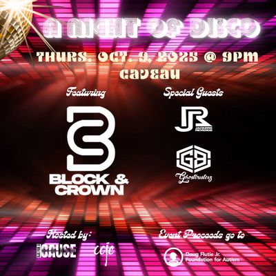 On Thursday, October 9th, Caveau Boston transforms into a glittering disco paradise for A Night of Disco—an unforgettable evening benefiting the Doug Flutie Jr. Foundation for Autism. This isn't just another night out; it's a celebration of the iconic disco era, complete with world-class DJs, dazzling outfits, and a community coming together for an incredible cause. The Funky House Collective takes center stage, featuring the electrifying sounds of Block & Crown, Jackers Revenge, and Ghostbusterz. Expect non-stop grooves, infectious energy, and a dance floor that won't quit until the last beat drops.
